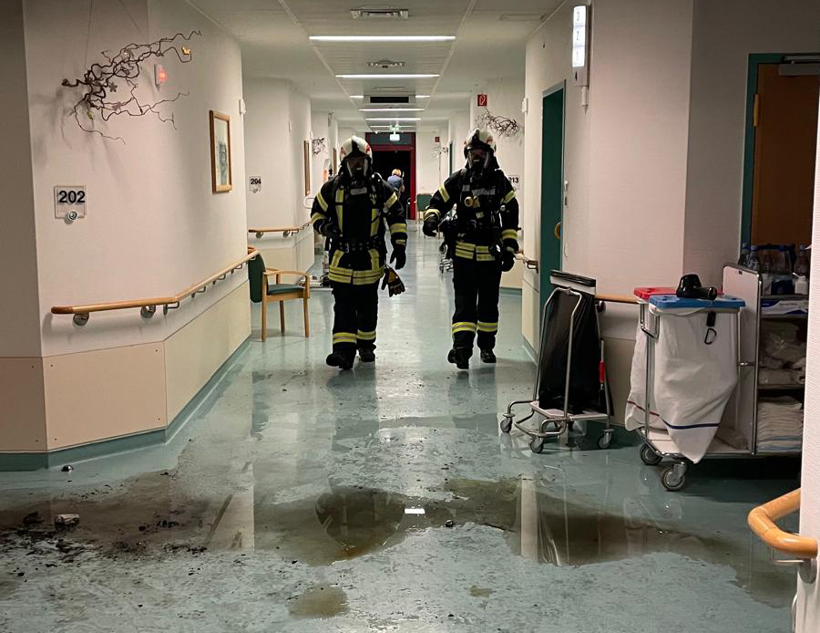 In der Nacht zum 22.08.2024 wurden wir zu einer eingelaufenen Brandmeldeanlage zum St. Elisabeth Krankenhaus in Lengenfeld unterm Stein alarmiert. Bei der Lageerkundung hatten die Rauchmelder im kompletten Gebäude ausgelöst und es bestätigte sich ein Feuer im Patientenzimmer. Die betroffene Station war stark verraucht.
